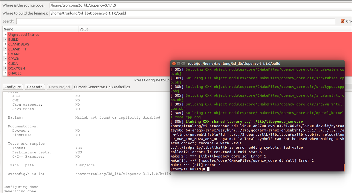 cvconfig.h is in: /home/tronlong/3d_lib/tiopencv-3.1.1.0/build