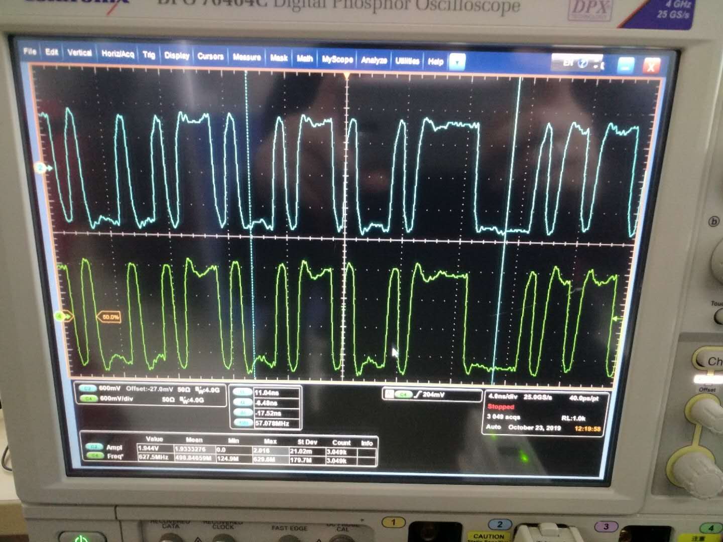 whenn 4x fail, lane3 and lane0 DspTx signal waveform , lane3 has active signal 400ms , then no signal (here srio discover timer value 0xf), (if srio discover timer value =0x2, signal presents for about 32ms )