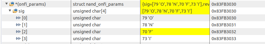 then the CRC error occurs. But in the second read we received the "ONFI" string: