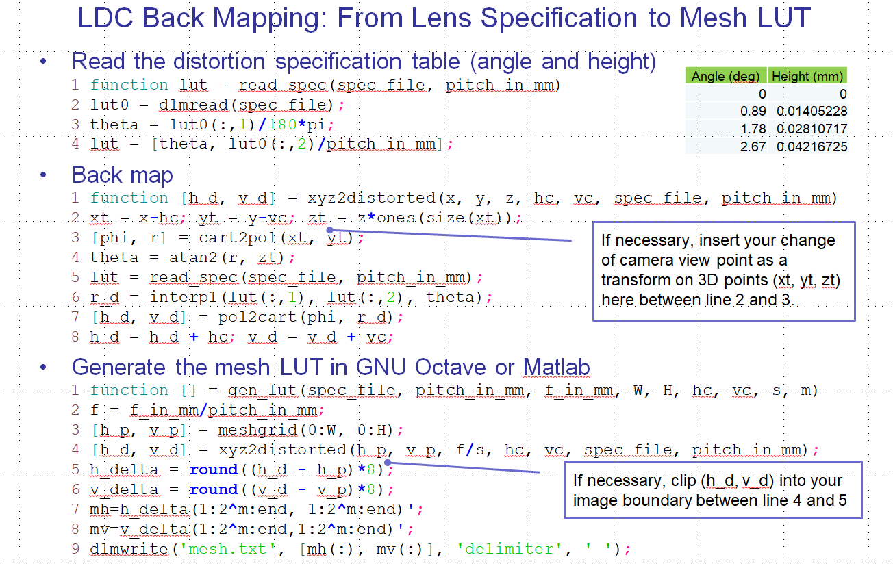 I have given a distorted MCC chart as input image and generated mesh lut using the script below.