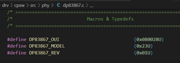 Therefore, I changed the code of dp83867. C and changed its oui, model and Rev.