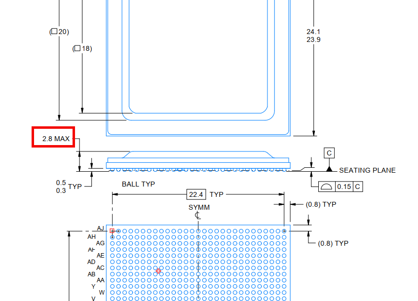 The datasheet just provide the max height is 2.8mm. Customer want to know the minimum height of TDA4VM.