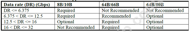 JESD standard recommends using 64b/66b encoding when lane rate is >16Gbps.