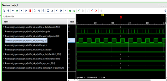 I have run into a problem porting the zcu102_64b66b reference design from a 8 lane design to a 2 lane design. The TI xzcu102 64/66 bit reference design with 8 JESD lanes, for evaluation of the AFE7950 on the EVM7950 works reliably with 8 lanes as supplied but does not work when reconfigured to work over 2 lanes with the porting changes. The TX side, ie DAC side is delivering tones however the RX side never demonstrates a data valid active in the FPGA to indicate that the FPGA transceiver is locking on to a valid JESD stream from the AFE7950. The following is a capture of the behavior on the RX side as captured using the Vivado HW debug tool integrated with the design. I have also included a document detailing the changes that I determined as necessary from the instruction supplied with the reference design. I would appreciate any help with uncovering why this is not working. Thanks