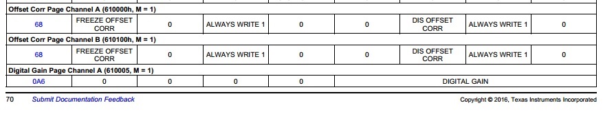 .The value written to Address 6068 in Table 120 does not match the Register Map on page 70 of the data sheet.