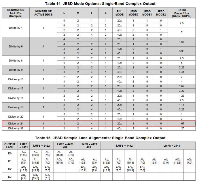 Customer would like to use decimation 24 to have 122.88Mhz sampling rate with LMFS=1241 setting but why there is no this configuration in datasheet table 15?