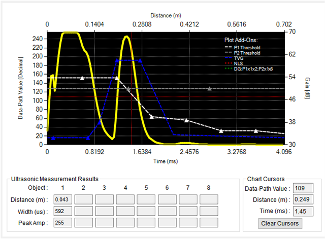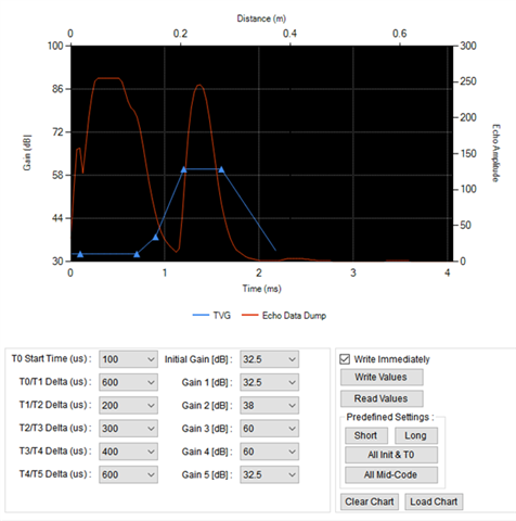 Now, one of our customers debugs with TI’s EXP430F5529LP + PGA460 mother board + PGA460 daughter card, and after adjusting the Time Varying Gain, the Data Monitor window screenshot is as follows: