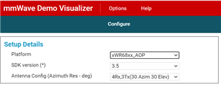 My customer has a problem using the online MMWAVE VISUALIZER 3.5 with the IWR6843AOP + SDK 3.2. The tool is supposed to support the SDK 3.2 but it turns out that he can't select this version of SDK with this device: