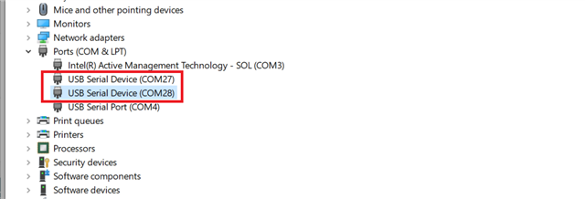 I have a AWR1843Boost. When I connect to it with PC through USB, in device manager I can see two VCPs: XDS110 Class Application/User UART and XDS110 Class Auxiliary Data Port.