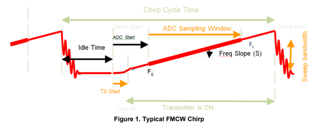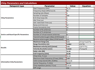 Second, "Each frame is configured to have 2 chirps. However only the 1st Chirp in the frame is used for processing." What's the purpose here to send two chirps? Meanwhile, could we configure the duration of each chirp and the time gap between these two chirps (not the gap between the frames)?