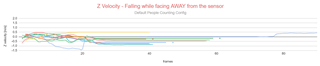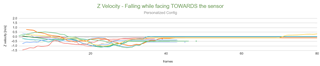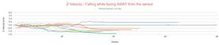 We suspected at first that falling in a different direction could cause a different measurement on the radial velocities, which would cause a different computation for the centroid's Z speed, which would then cause a difference in the tracking computation and outcome. However, the velocity in the Z axis seems the be the same, as shown below:
