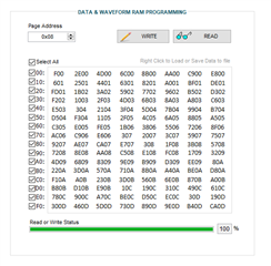 "The data and waveform RAM memory can be programmed 1 byte at a time. The upper 4 bits of the 12-bit data and waveform RAM memory address must be loaded into the DATA_WAVE_PAGE_ADDR register. The remaining 8 bits of the data and waveform RAM address are included in the SPI protocol."