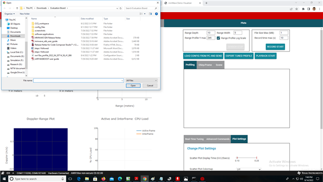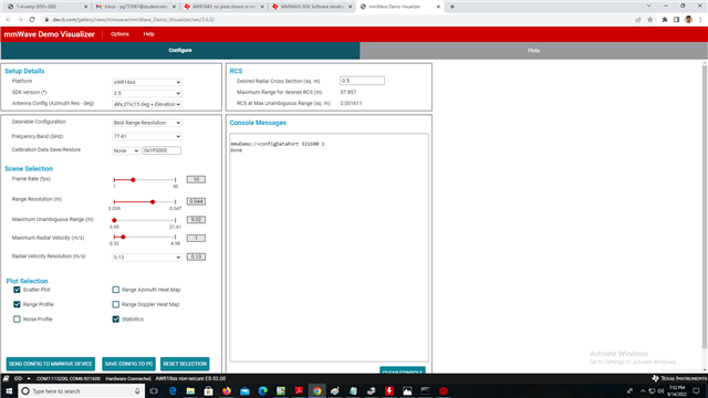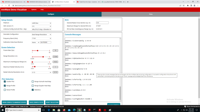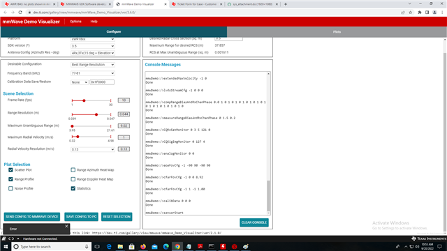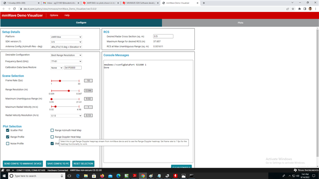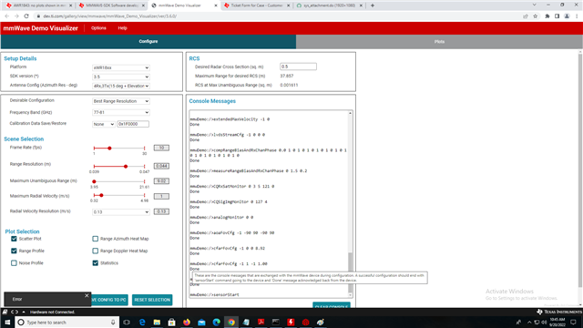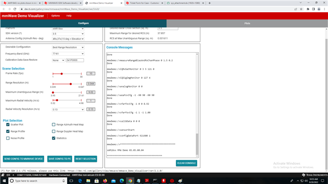 2. The SENSOR STOP button in the 'Plot' tab is not active even after pressing 'SEND CONFIG TO MMWAVE DEVICE' in 'Config' tab. What to do?