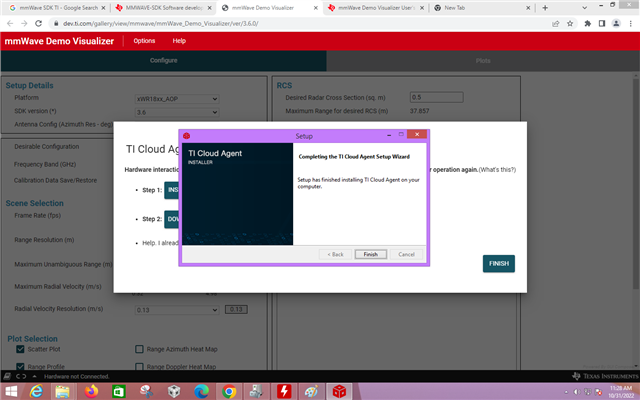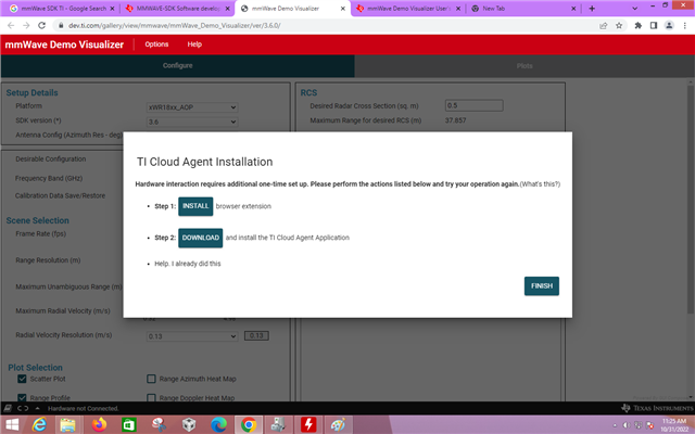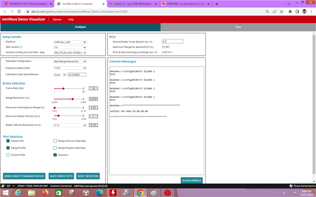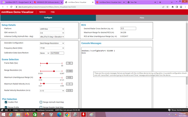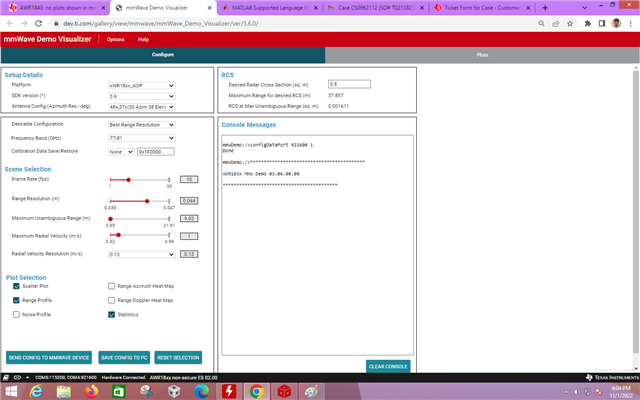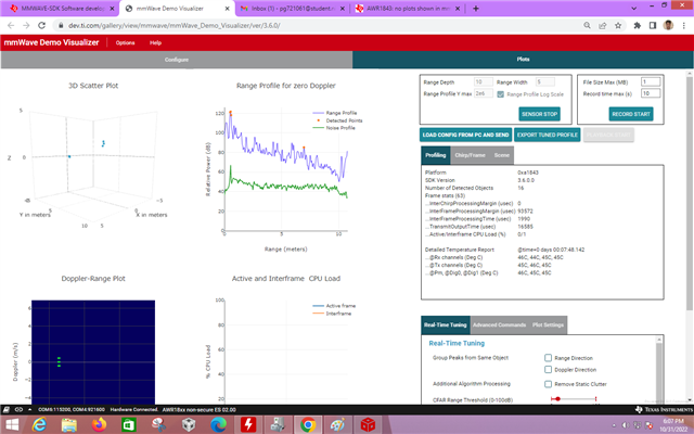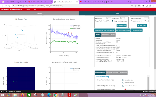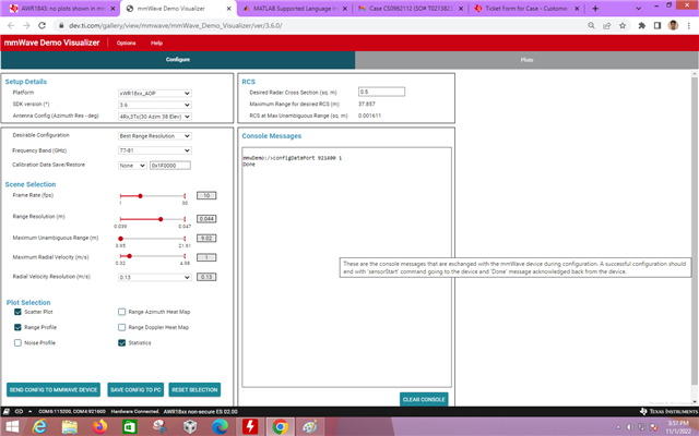 2. The SENSOR STOP button in the 'Plot' tab is not active even after pressing 'SEND CONFIG TO MMWAVE DEVICE' in 'Config' tab. What to do?