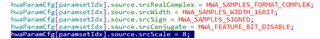 As shown in below codes. I did not find any description in HWA user guide compression addendum regarding to srcScale and dstScale.