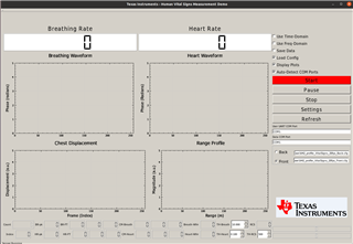 I have an AWR6843AOP and am trying to use vital signs samples via TI's default samples repository. Since I'm using Linux/Ubuntu, I opened the vitalsign gui with wine.