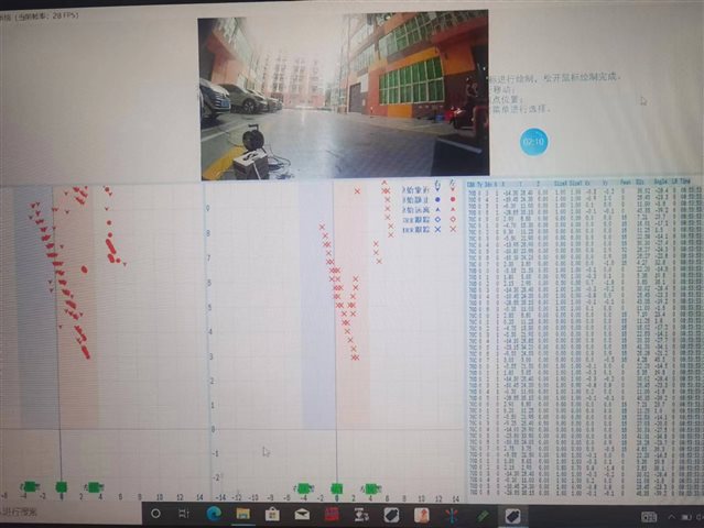 From the test results, a stationary target appears in the final section (the red dots are stationary targets and the arrows are moving targets. The result is when the upper position machine is held for some time, so the motion target is not visible in the view)