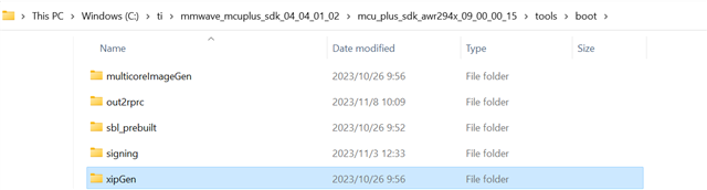 Secondly, if AWR can not support the XIP, what is this tool(ti\mmwave_mcuplus_sdk_04_04_01_02\mcu_plus_sdk_awr294x_09_00_00_15\tools\boot\xipGen) used for?