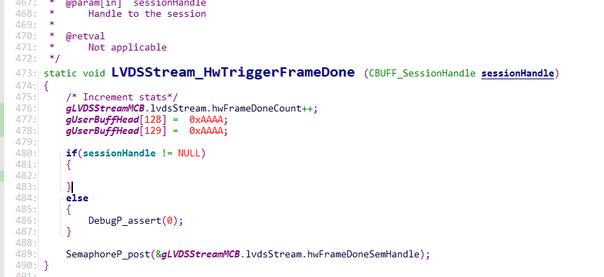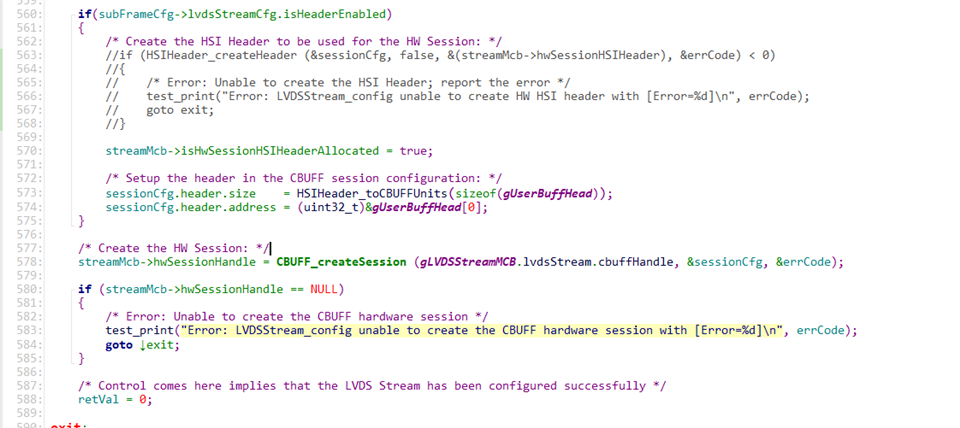 Customer defined an array for sessionCfg.header, but after modifying the array in LVDSStream_HwTriggerFrameDone,the lvds signal doesn't output the new value. How to change the value in sessionCfg.header?