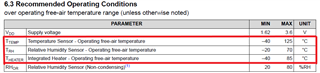 The HDC2022 needs multiple recommended operating temp ranges because each of its features has a different useful range. The temp sensor can be used across the full range of the device, so that's why its -40C to 125C. The heater isnt going to be able to heat the part past 85C in most scenarios, so if ambient temp exceeds 85C, the heater wont do anything. Hence, its temp range is -40C to 85C. The humidity sensor should not be used above 70C because higher temps can act as a bake which will create a negative shift in RH accuracy, and RH isnt a useful measurement below -20C, so thats why its range is -20C to 70C.