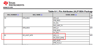Any particular ball can have multiple signal. i.e. it can used for output from any one signal at a time from multiple signal. In the given diagram ball B2 can be used for SPI_HOST_INT or as GPIO_12. you can have interrupt at any given gpio of your choice.