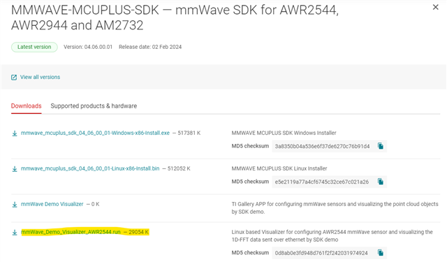 1.Currently the Visualizer version does not support 2544,When will the mmWave Demo Visualizer version 4.6 be updated,and whether the new version supports the upper computer to collect 1D?