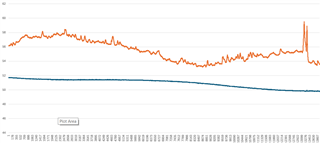 On the same board, I also have the HDC2021DEBR connected, which provides readings much more in line with the environmental and chamber values. However, across a batch of 30 boards using the HDC3021DEHR, the humidity discrepancy persists.