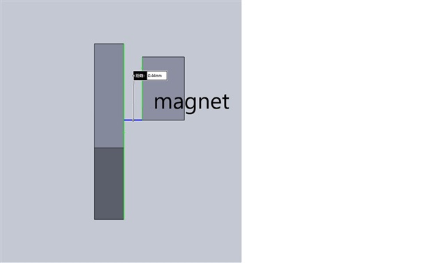The current planned relative position of the magnet and sensor is as shown in the figure