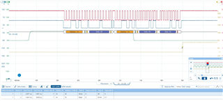 As you can see from the image below, this is the comunication via I2C when the microcontroller requests TACH DATA register. Here TACH DATA returns the correct value (0x405 = 1029 = 5830 rpm)