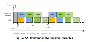 When sampling with averaging on, the device will complete the programmed single conversion sequence before repeating.