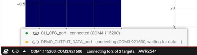 I understand that the mmWave Demo Visualizer supports the AWR2544LOPEVM. However, when I launch the mmWave Demo Visualizer and connect it to my PC, it detects the AWR2544 device, but when I press the "Send config to mmWave device" button, it does not plot any data. Upon checking the connection, it seems that the data transmission through the DATA_Port is not functioning correctly.
