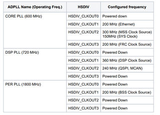 So the main clock sources you would have are 600M, 720M, 1.8G as well as all of the clock divider outputs (200M, 150/300M, 360M, 240M). The sources are defined in the table above.