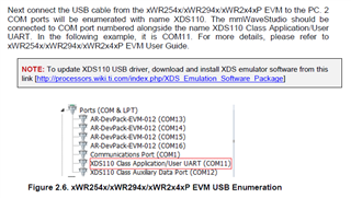 Hi, there is a subsequent problem: while somehow I'm able to connect to COM PORT, FW loading got stacked. Please see for details: AWR2944EVM: Firmware is stacked while loaded - Sensors forum - Sensors - TI E2E support forums