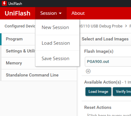 Uniflash is TI's preferred tool for flashing firmware to PGA900 and PGA970.