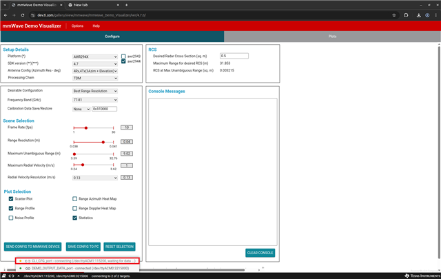 We are trying to get an output on mmWave Demo Visualizer but we are not able to detect the serial port.