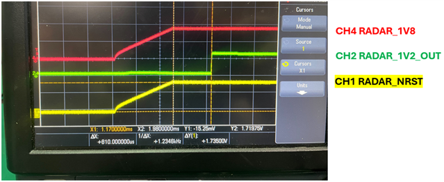 What is the time difference between 1.8V and 1.2V output? We're using AWRL1432 BOM optimized 1.8V topology and the 1.8V stable time and 1.2V output time difference is around 810 us.