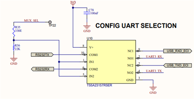 RS232TX, RS232RX of IWR routes to STM32UART |