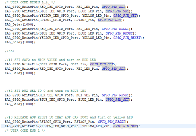 To ensure there is no race condition and SOP2 value (controlled by STM) stabilizes before AOP is booted. We again pull AOP_RST to low for some time after SOP is stabilised using the below code