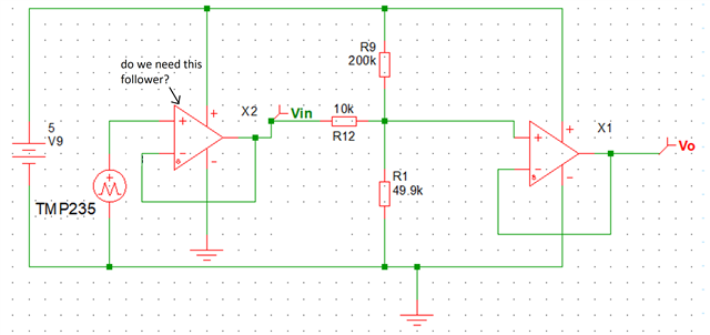 Do we need the follower after the sensor or we can just connect the output of the sensor to R12?