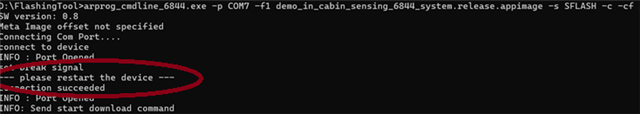 when using flashing tool to program the firmware to xwrl6844, it shows "please restart the device".