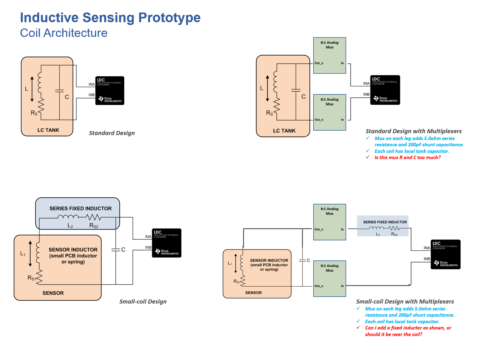 Can you please clarify where the additional fixed inductor should go if we are using multiplexers in the coil path. Ideally we would like to use a single fixed inductor on the LDC1000 side of the muxes.