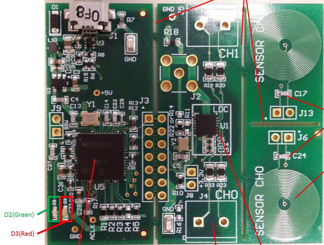 There are green and red LED is mounted and they are driven by MSP430. Now I'd like to know when these LEDs are turned on. The green LED seems to turn on at microUSB connector is connected. But I'm not sure when red LED is turned on.