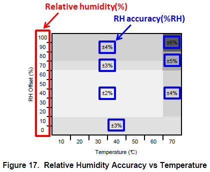 I believe red part(vertical axis) shows relative humidity(%) and blue shows typical RH accuracy(%RH).