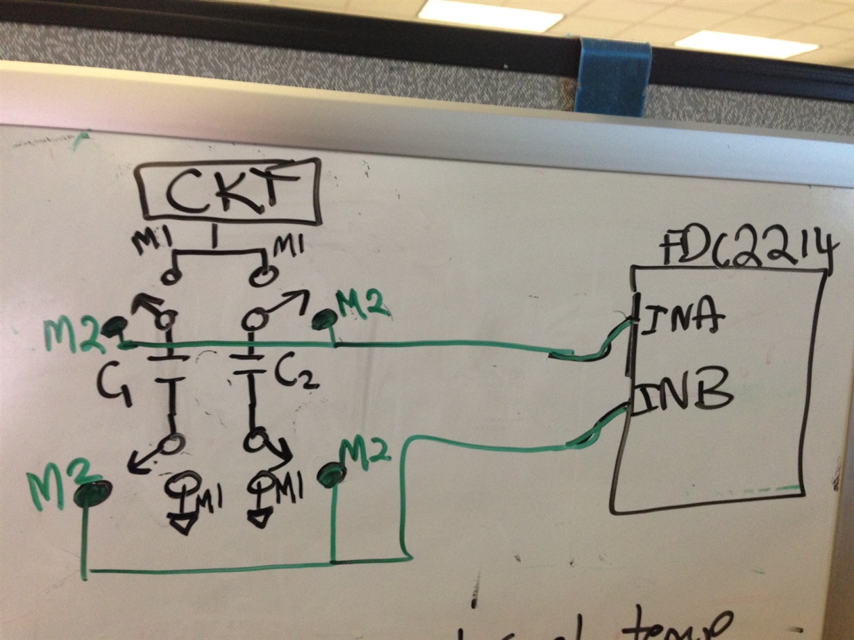 2) Does TI have a recommended configuration for what I'm trying to implement? I'm attempting to measure the capacitance difference between 2 DISCRETE capacitors of nominal 50pF and 500pF value with good precision (better than 1%) for calibration purposes. There are two modes of operation