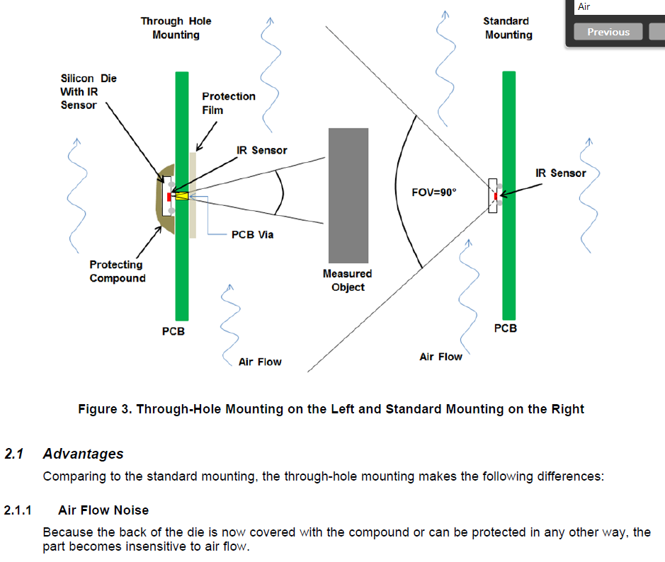 The documetation associated with the TMP007 shows a "protecting compound" covering the TMP007 when using through-hole mounting as shown below.