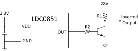 We found as we connect NPN transistor base to the LDC0851 output ,LDC0851 with PNP.pdfthe level for sensing is not flipping.