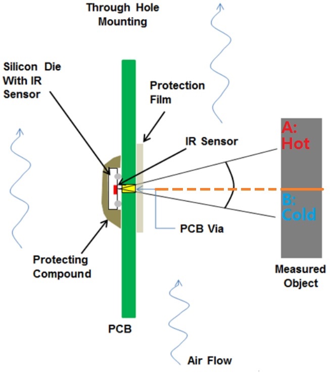 0) If I use one TMP007 like that, can it distinguish that A is hotter than B when mounted as the Through-Hole method?