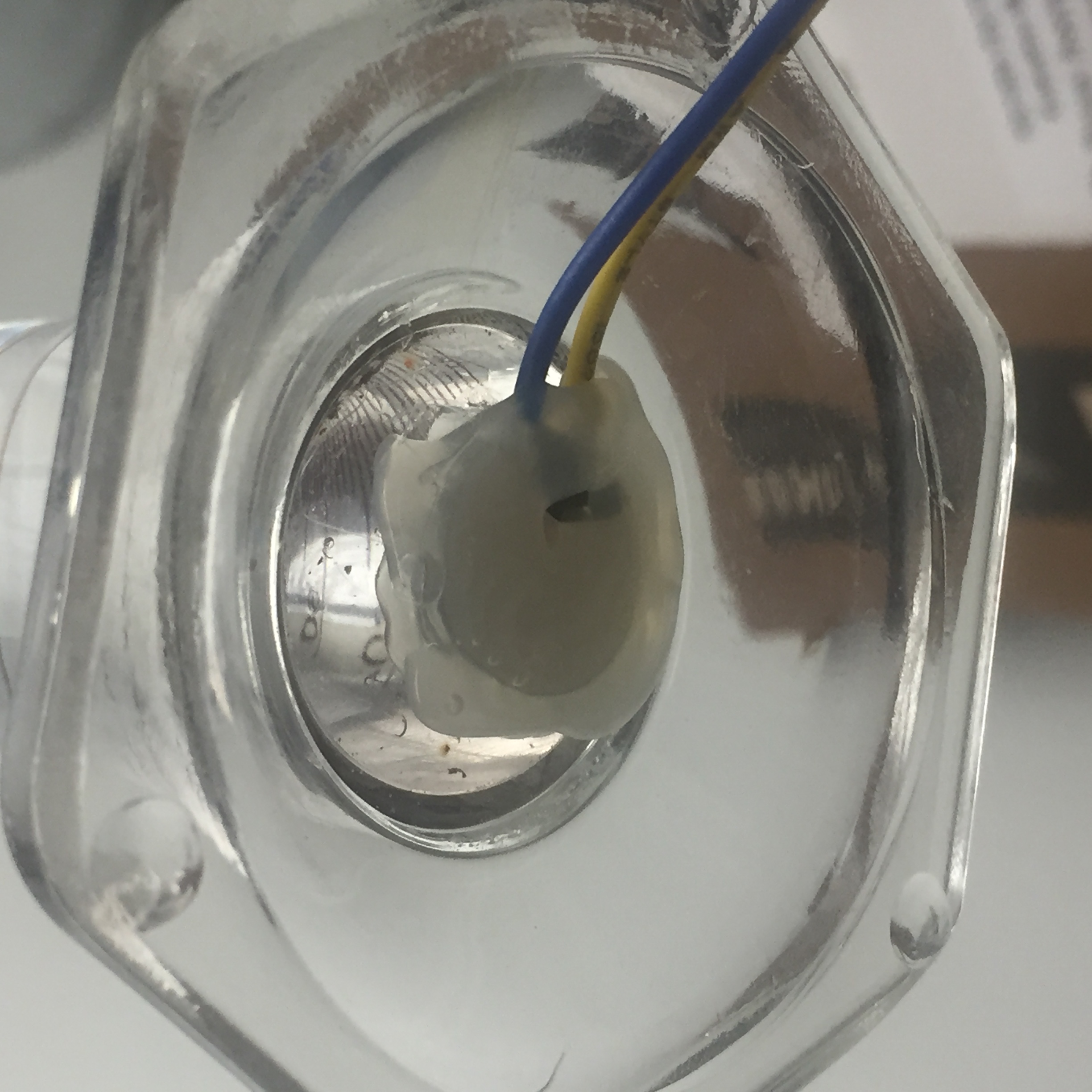 Measure level from top of a glass bulb, metal sight gauge, or plastic reservoir. The glass is ~5 mm thick, the metal is ~1 cm thick with some depth variance (see "mounted sensors" photos below), and the plastic is ~2 mm thick. The sensor cannot be exposed to the liquid i.e. on the inside of the container.