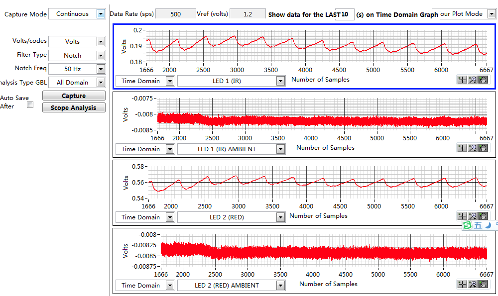 I use the SPO2-FE EVM REV.A demo to watch the PPG by Prosim8P, the prosim8P setting as follow; the hardware and the firmware doesn't change, the firmware and hardware use the default setting from the TI website.
