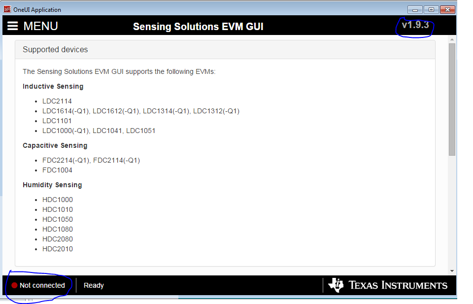 I am connecting this EVM to my pc , on which “OneUI Application – Sensing Solutions EVM GUI v1.9.3 ” is installed . But after connecting the EVM with USB to PC ,it is not reading the device .